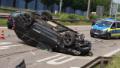 Übler Unfall am Neckarufer: Beim Zusammenstoß zweier Autos ist ein Mädchen verletzt worden, einer der Wagen landete auf dem Dach.Foto: Andreas Rosar Via: Unfall in Stuttgart – Mädchen (9) bei Überschlag- Crash verletzt
