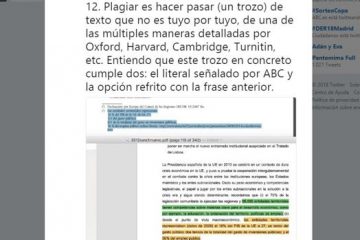 A los pocos minutos de que el presidente del Gobierno hiciese pública en formato digital su tesis, numerosos tuiteros se han lanzado sobre el documento para investigarlo y algunos han encontrado nuevos plagios que aún permanecían ocultos. A través de una cadena de mensajes, uno de los usuarios de esta Read more